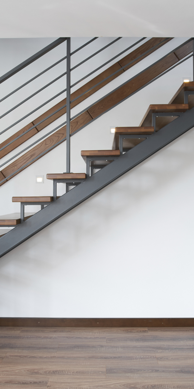 Wood handrails are a classic choice that can be stained or painted to match your home’s decor. We offer a variety of wood species to choose from, including oak, maple, and hickory. Wood handrails can be paired with wood, iron, or glass balusters for a custom look.
